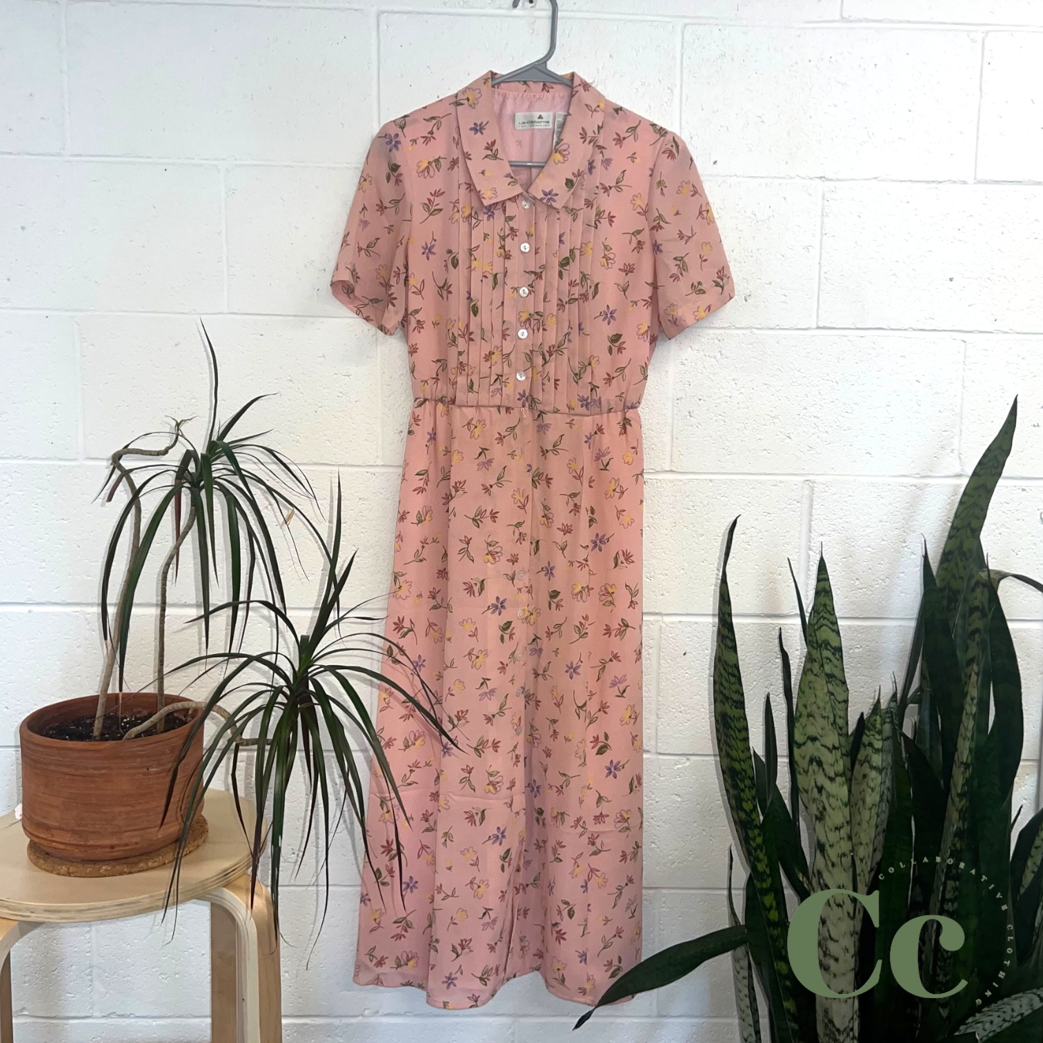 Trendy prairie dress with collar and buttoned front.